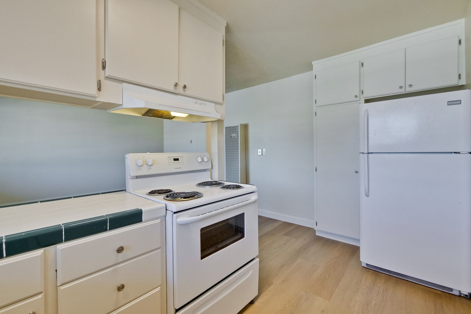 Kitchen includes refrigerator.