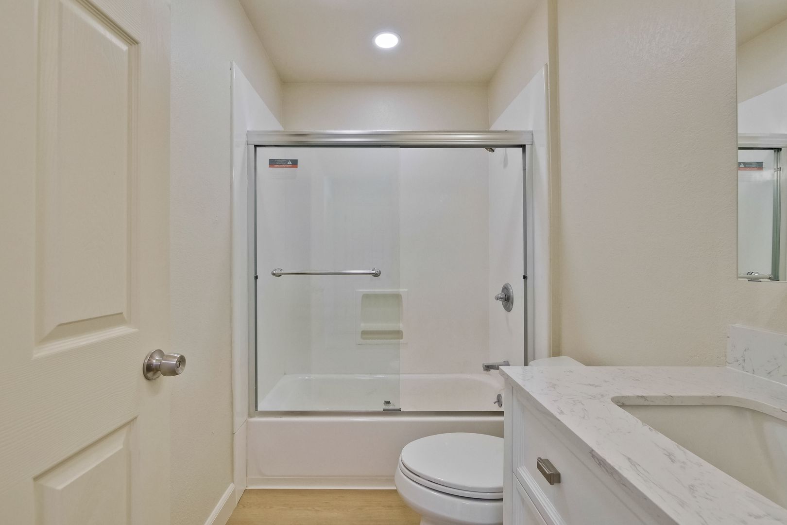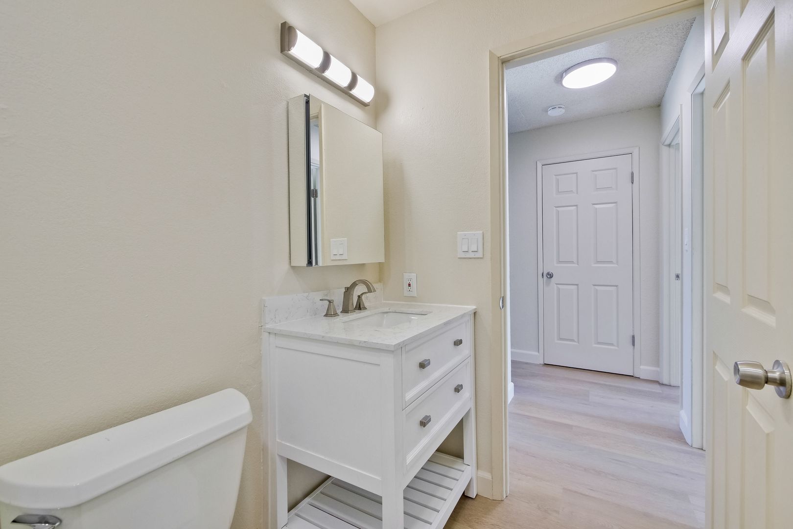 Newer paint, newer vinyl plank flooring, newer refreshed bathroom with newer vanity.